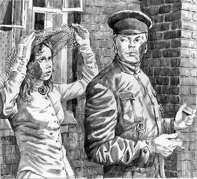 ![]() | 自分も顔にやけどのあるふりをして、マーシャを誘惑するテオフェルス。任務とはいえ、悪い男や。 |