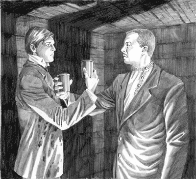 ![]() | どちらかに毒の入ったワインで、ロシアンルーレット式決闘をする、ロマノフとテオフェルス。 |