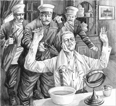 ![]() | フォン・テオフェルスの髭剃り中に、ロシアのエージェントが踏み込む。 |