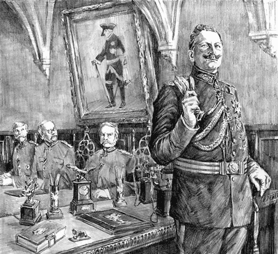 ![]() | 皇帝ヴィルヘルム二世を前にした、ドイツ軍の作戦会議。脅威となるロシア軍の巨人機を、なんとかすることに決定。 |