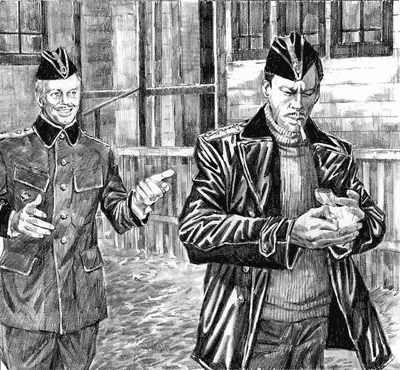 ![]() | 機銃手のルーチコに、病原菌入りコニャックを飲ませようとする。 |