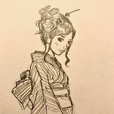 ![]() | 美女くの一のオユミ。アクーニン氏の設定では「日本髪を結っているがドレスは洋風」となっていますが、そんな変な格好するわけないやろ!ということで、普通の和服にしました。 |