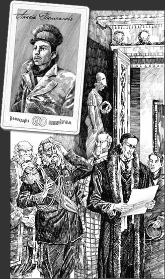 ![]() | 天下のモスクワ総督、ドルゴルーコイ公爵を巻き込んだ詐欺事件が発生! ハンカチで汗をふいているのがドルゴルーコイ。書類を見ているのが、ごぞんじファンドーリン。左端の頭つるつる&頬ひげもじゃは従僕フロール。チェックの服がイギリス人ピッツブルク卿。右端がチュリパノフ。左上の写真もそうです。 |