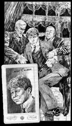 | ムッシュ・シモン | シュストロフの事業パートナーで、「演劇・映画社」の映画部門を担当している。パリ帰りのロシア人ですが、その正体は第九巻「死の恋人(男)」の主人公セニカ・スコーリコフ。立派になりましたな。ところで苗字のシュストロフもスコーリコフも、語源としては「素早いやつ」みたいな意味です。 |