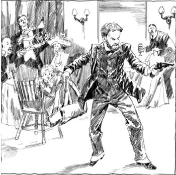 ![]() | ファンドーリンらに包囲され、レストランで暴れる強盗ルジェーヴィチ。 |