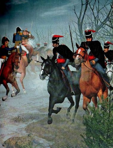 ![]() | 退却するナポレオン軍を、ロシアのコサック騎兵が襲う。 |