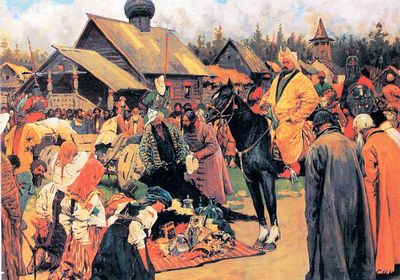 ![]() | モンゴルの徴税代官に税を納めるロシアの民。「タタールのくびき」という、ロシアにとって屈辱の歴史らしいです。 |