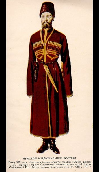 ![]() | カフカス地方のイスラム住民は、大体こんな服装だったようで。なかなかかっこいいですね。胸に筒がいっぱい付いているのは、ライフルの弾が入っています。 |